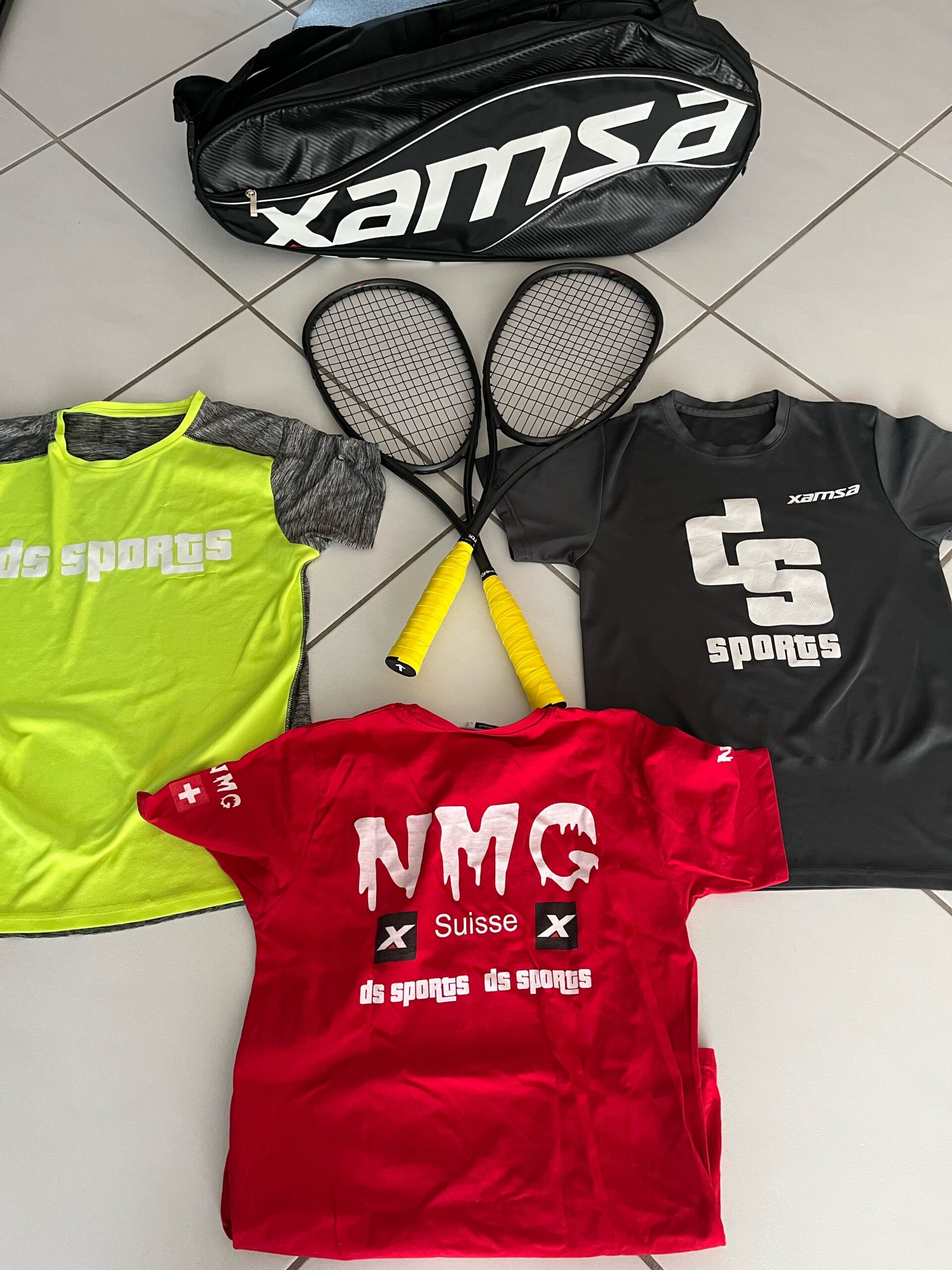 Bereits 2021 erhielt ich von Diego Staub, Inhaber der Firma DS Sports, einen Ausrüstervertrag, wofür ich sehr dankbar bin. Seither spiele ich mit der Marke Xamsa. Ich liebe es mit dem gut ausgewogenen und stylischen Racket zu spielen. Ebenso trage ich sehr gerne die T’Shirts und weiteren Produkte der Firma DS Sports.