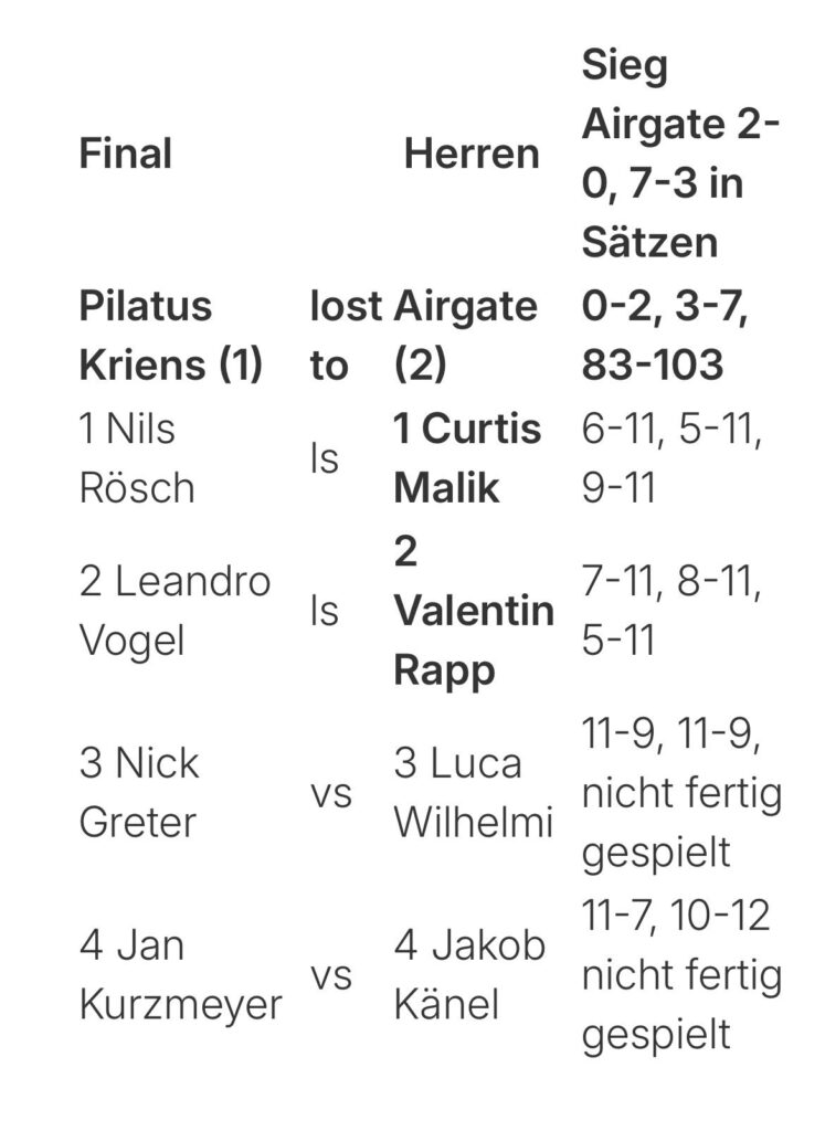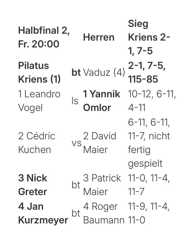 Mit einem überzeugenden 3:1-Sieg am Freitag gegen Vaduz qualifizierten wir uns für das Finale – ein historischer Meilenstein für den Squashclub Kriens, denn noch nie zuvor stand ein Team aus Kriens in einem Playoff-Finale.
